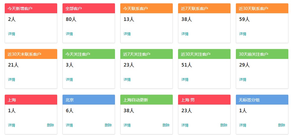 2、 用户分组:自定义分组条件,时刻追踪访客行为,如30天联系客户、7天联系客户、上海客户等,轻松实现精准营销!